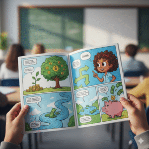 Financial literacy education faces a fundamental challenge: traditional teaching methods fail to engage today’s visually-oriented learners, leaving 73% of teens unprepared for basic money management decisions. Research from the National Financial Educators Council reveals that students retain financial concepts 340% better when learned through visual storytelling versus textbook-based instruction.